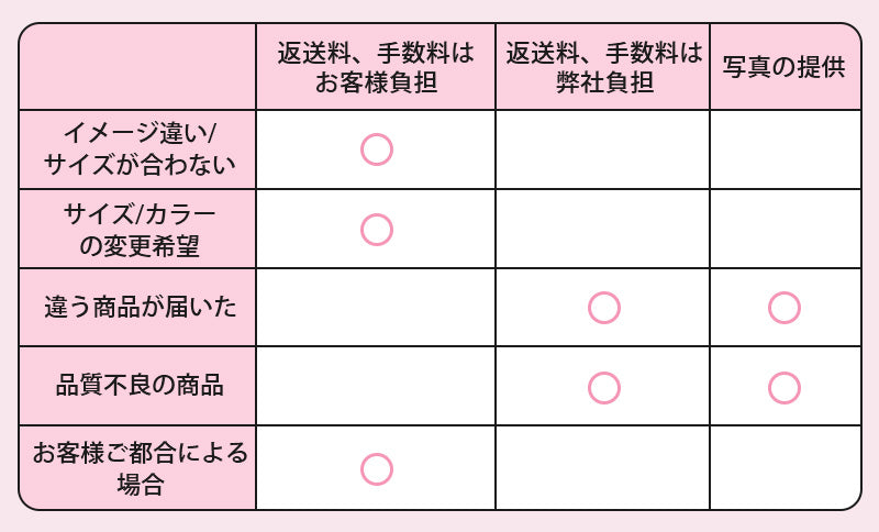 ※返送料につきましては、下記の「商品の返送料について」をご確認ください。