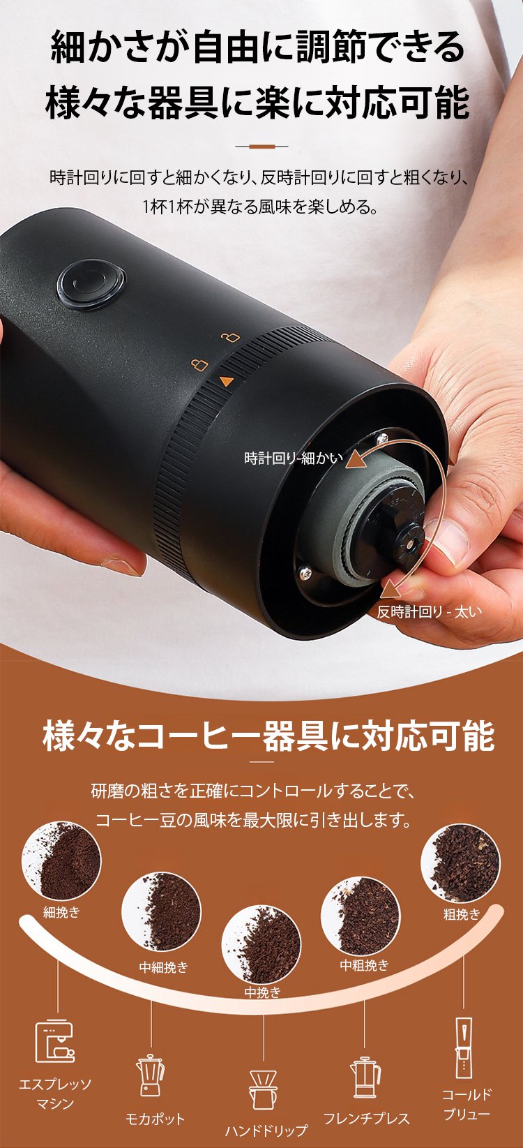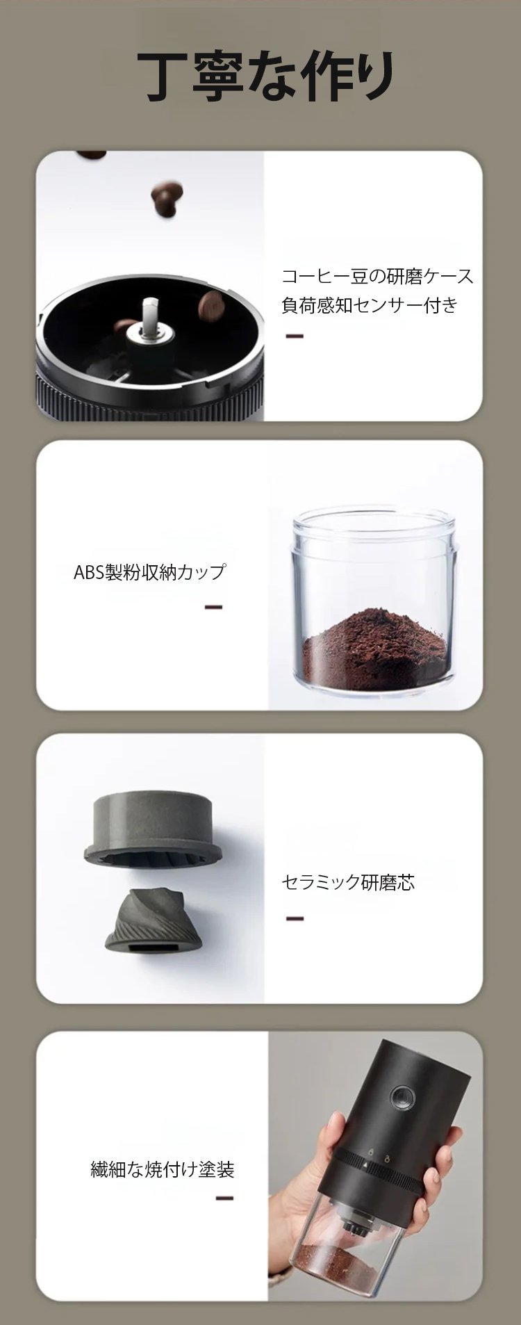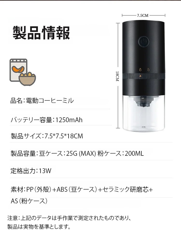 ポータブル家庭用電動コーヒーミル