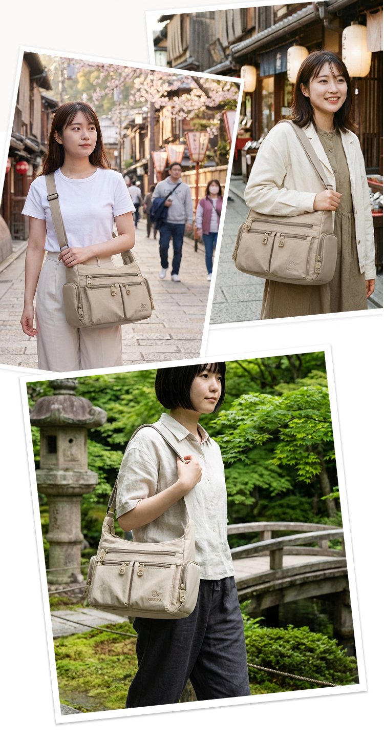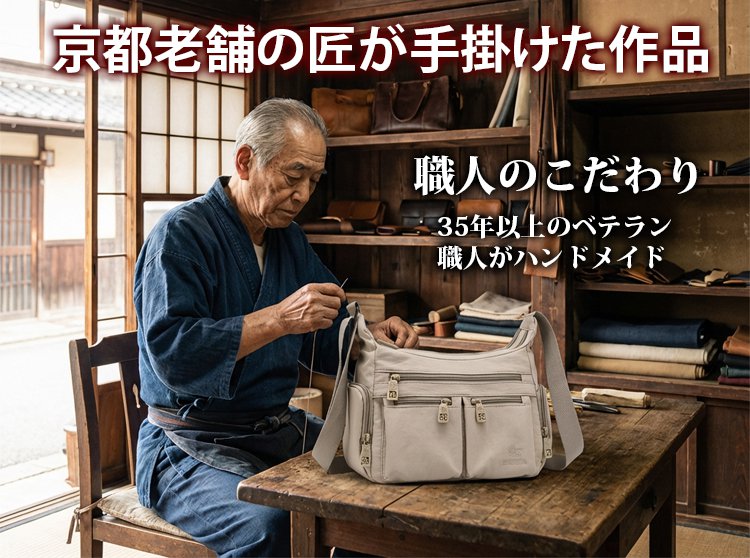 ショルダー、斜め掛け、ハンドバッグ。35年以上の経験を持つ熟練職人が一針一針縫い上げた、贅沢な逸品。男女問わず、日常から旅行まで「これ一つ」で完結します。